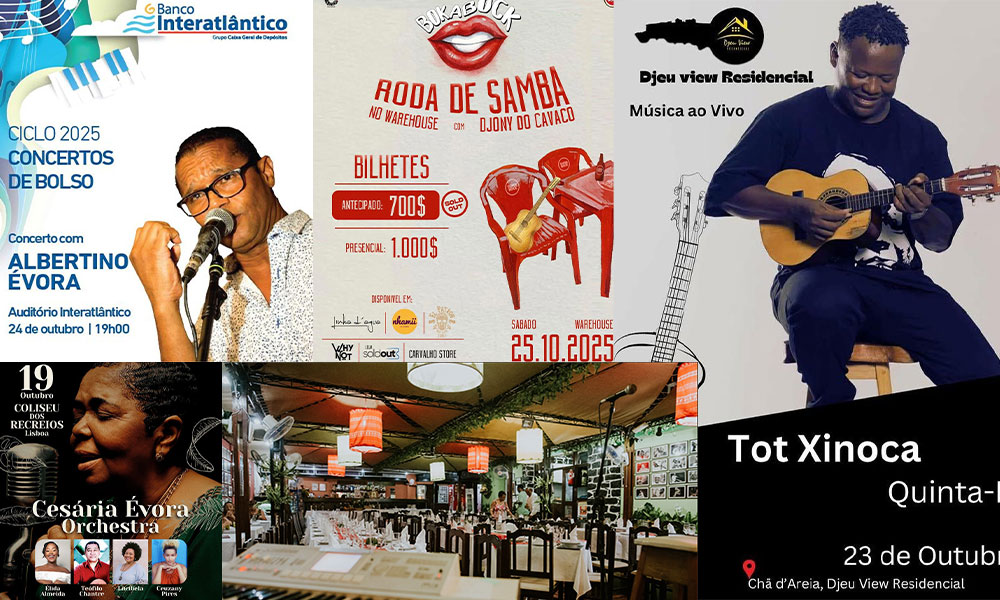 – Concertos de Bolso com Albertino Évora, no Auditório Interatlântico, Edifício Sede, Chã de Areia, na Cidade da Praia, sexta-feira, 24, às 19h