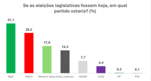 No cenário em que as eleições legislativas fossem realizadas no momento da sondagem, portanto, em finais de Dezembro de 2025, o MpD surgiria como vencedor, com 31% das intenções de voto a nível nacional.