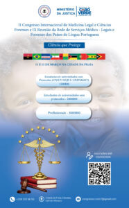 O Instituto Nacional de Medicina Legal e Ciências Forenses promove, no Centro de Convenções, da Universidade de Cabo Verde, acolhe a partir de hoje,11 e durante amanhã, 12, o II Congresso Internacional de Medicina Legal e Ciências Forenses e a IX Reunião da Rede de Serviços Médico-Legais Forenses dos Países de Língua Portuguesa (RSMLFLP).