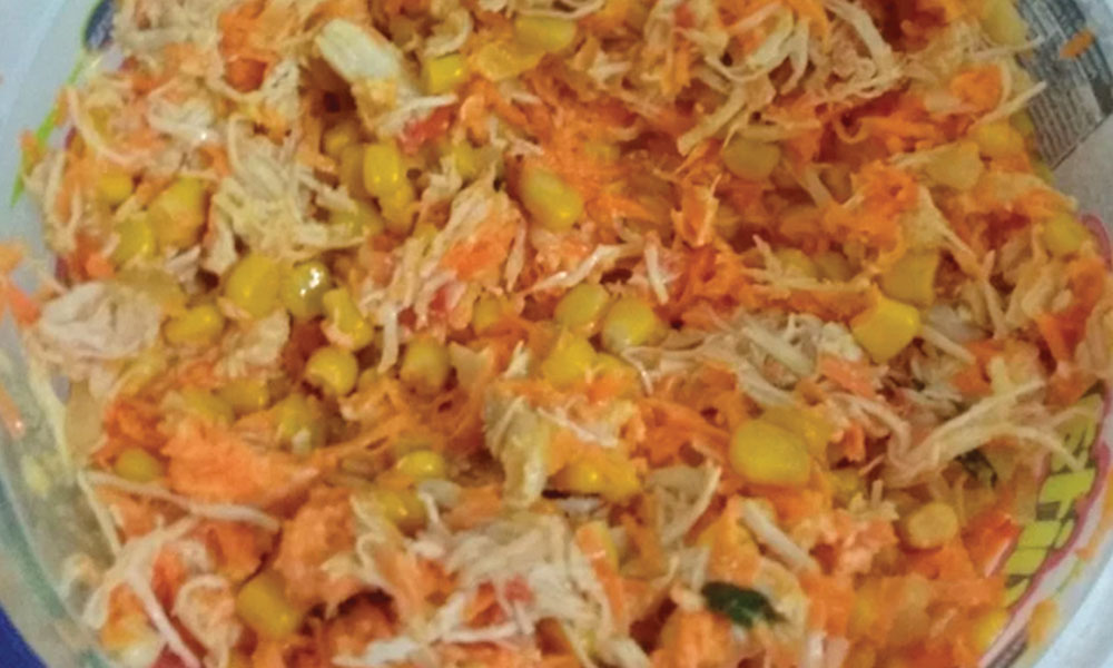 1- No pão coloque o frango desfiado, a alface em tirinhas e a cenoura junto com a maionese.